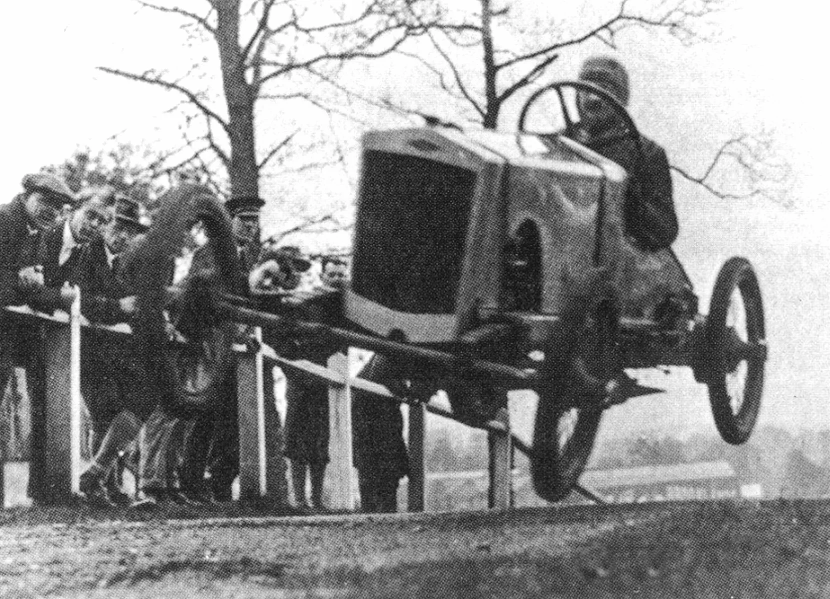 An old speedster cresting a hill at a hillclimb. Note the twist in the frame! image courtesy AACA Library