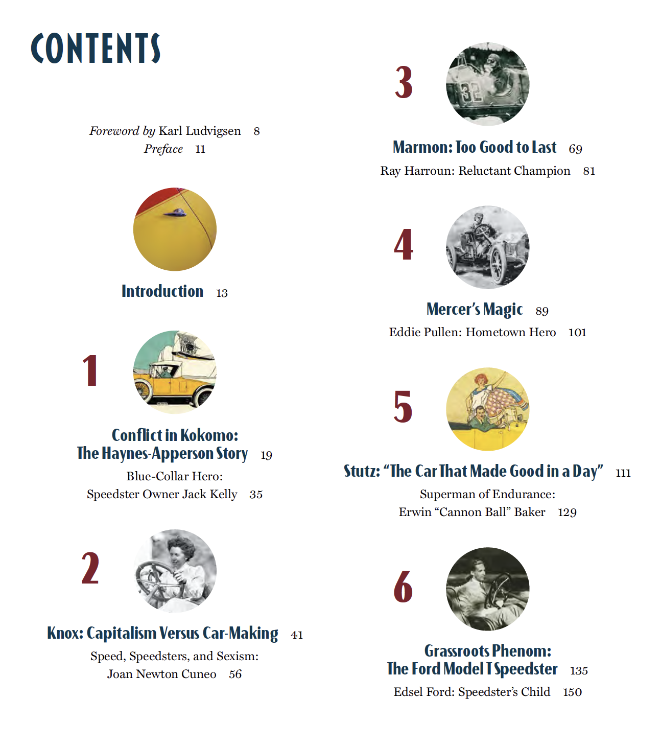 Classic Speedsters book Table of Contents, chapters 1-6